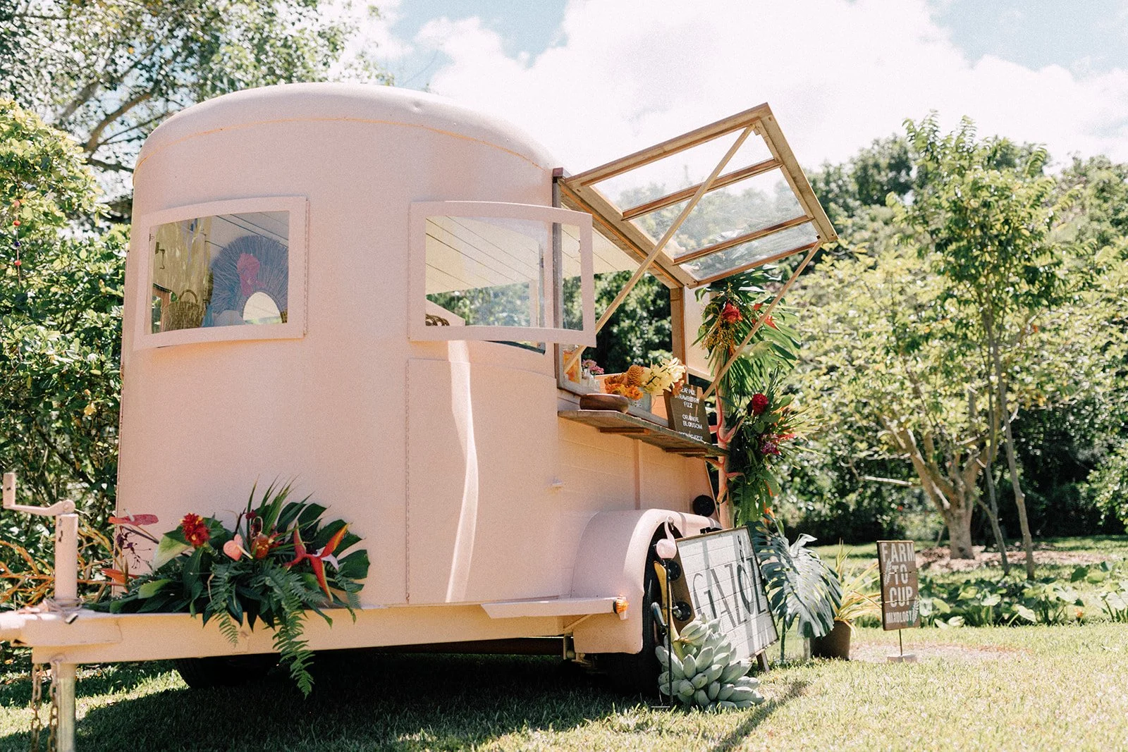 When booking you can chose from ‘Uncle Ed’- our Rustic Redwood Bar, or ‘Auntie Sue’- our Vintage Horse Trailer Bar. Both are designed beautifully with so character to light up any occasion.